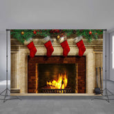 Christmas Tree Fireplace Vintage Photo Backdrop