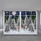 Two Deer Snow Forest Moon Night Christmas Backdrop