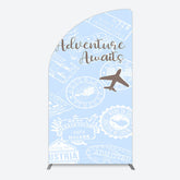 Aperturee Blue White Postmark Adventure Awaits Half Moon Arch Backdrop