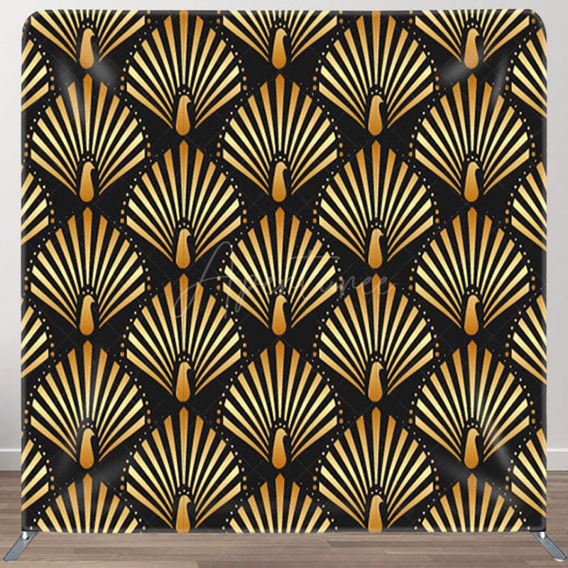 Aperturee Artistic Golden Peacocks Fabric Backdrop For Decor