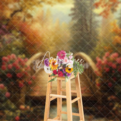 Aperturee Autumn Floral Bear Bridge Forest Photography Backdrop