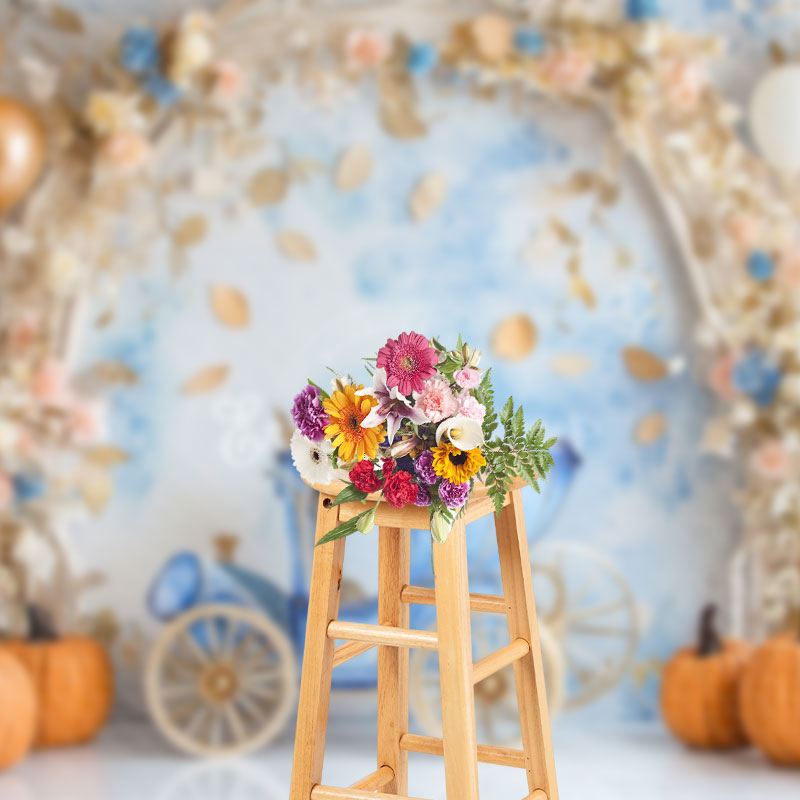 Aperturee Autumn Floral Carriage Pumpkin Cake Smash Backdrop