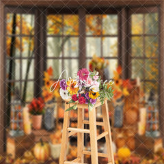 Aperturee Autumn Harvest Window Maple Forest Pumpkins Backdrop