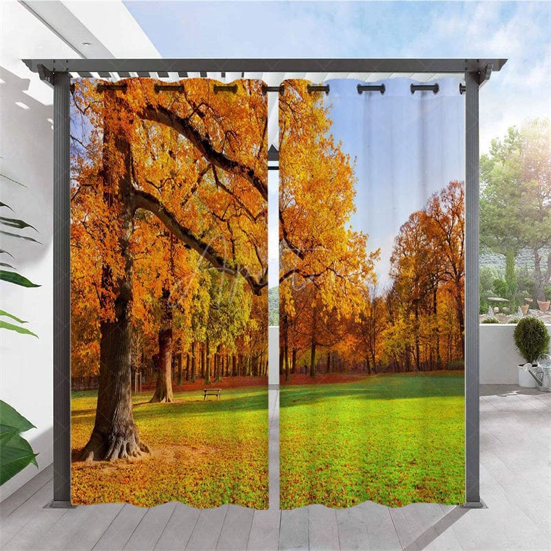 Aperturee Autumn Maple Forest Waterproof Outdoor Curtains For Porch