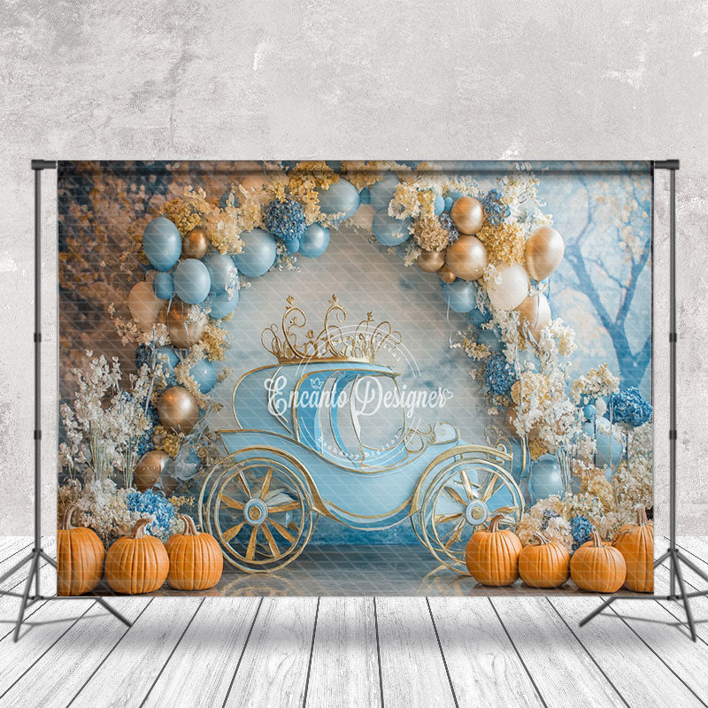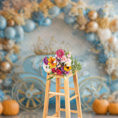Aperturee Blue Carriage Floral Pumpkin Cake Smash Backdrop