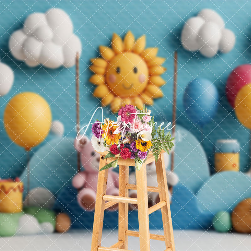 Aperturee Blue Cloud Mountain Swing Bear Cake Smash Backdrop