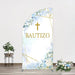 Aperturee Blue Floral Gold Cross Bautizo Baptism Half Moon Arch Backdrop