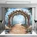 Aperturee Blue Sky Mountain Spring Floral Arch Sweep Backdrop