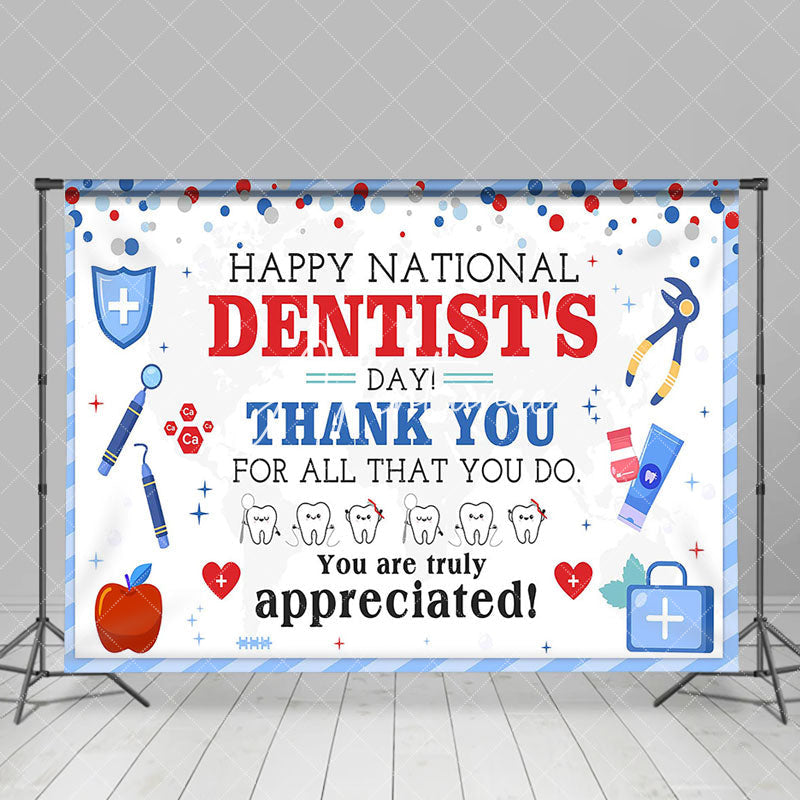 Aperturee Blue Tooth Tools Happy National Dentists Day Backdrop