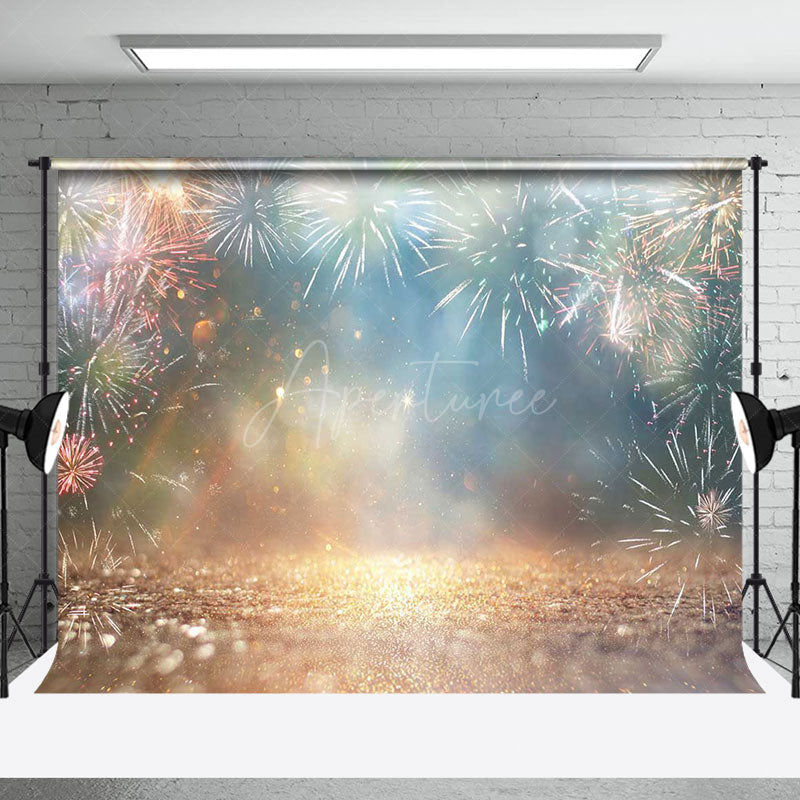 Aperturee Blurry Night Sparks Flicker Happy New Year Backdrop