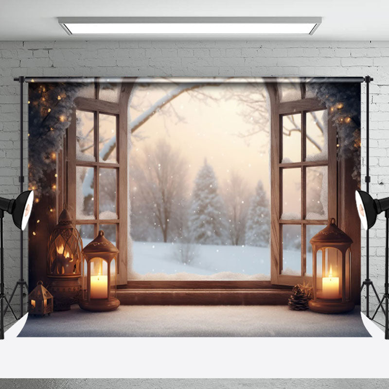 Aperturee Blurry Snowy Scene Candlelight Christmas Backdrop