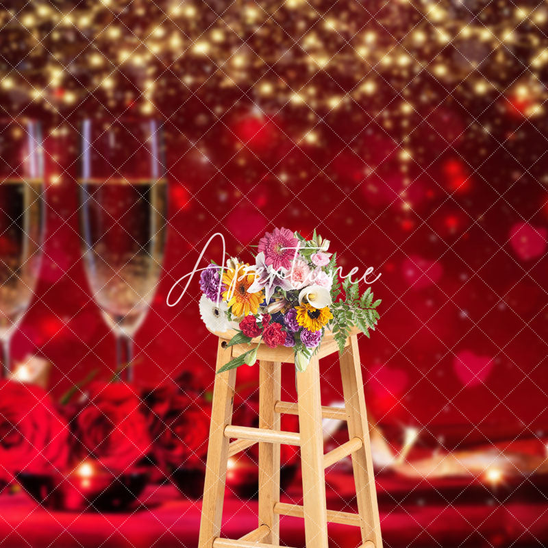 Aperturee Red Hearts Bokeh Lighted Valentines Day Backdrop