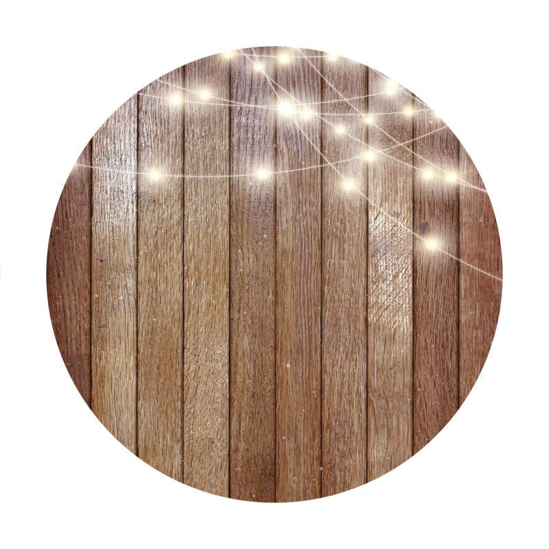 Circle Light Brown Wood Round Birthday Backdrop