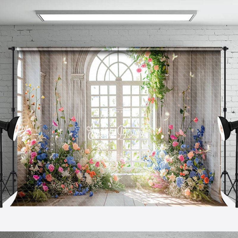 Colorful Floral White Retro Window Wedding Backdrop