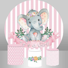 Its A Girl Pink Round Elephant Baby Shower Backdrop