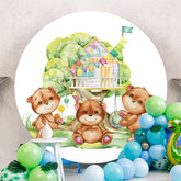 Circle Teddy Bears And Tree Baby Shower Backdrop