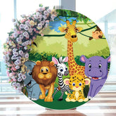 Safari Cartoon Animals Green Happy Birthday Round Backdrops