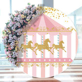 Round Golden Carousel Pink Happy Birthday Backdrop