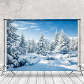 Aperturee Blue Sky Snowy Pine Forest Winter Photo Backdrop