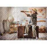 Retro Hot Air Balloon Globe Nautical Vacation Backdrop