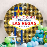 Circle Gold Bokeh Welcome Lasvegas Party Backdrop