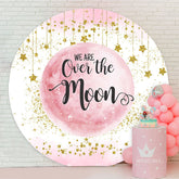 Pink Moon Gold Stars Bokeh Baby Shower Backdrop