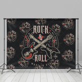 Black Repeated Guitar Rock And Roll Party Backdrop