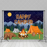Wild Forest Bear Night Happy Camper Party Backdrop