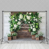 Aperturee Wooden Wall White Floral Greenery Spring Backdrop