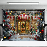 Luxury Green Red Door Trees Snowy Christmas Backdrop