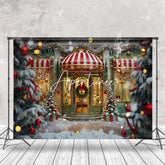 Aperturee Merry Christmas Scroll Photography Backdrop, Snowy Night Scene with Lanterns, Holiday Mini Session Background