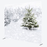 Aperturee Snowy Forest White Words Square Tension Backdrop