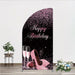 Aperturee Happy Birthday Half Moon Arch Backdrop for Her, Pink Glitter High Heels and Champagne, Fabulous Women's Party Photo Prop