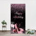 Aperturee Happy Birthday Rectangle Backdrop for Her, Pink Glitter High Heels and Champagne, Fabulous Women's Party Photo Prop