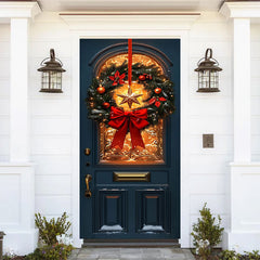 Aperturee Red Bowknot Star Wreath Light Xmas Navy Door Cover