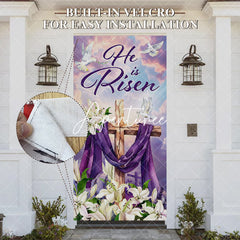 Aperturee White Floral He Is Risen Cross Easter Door Cover