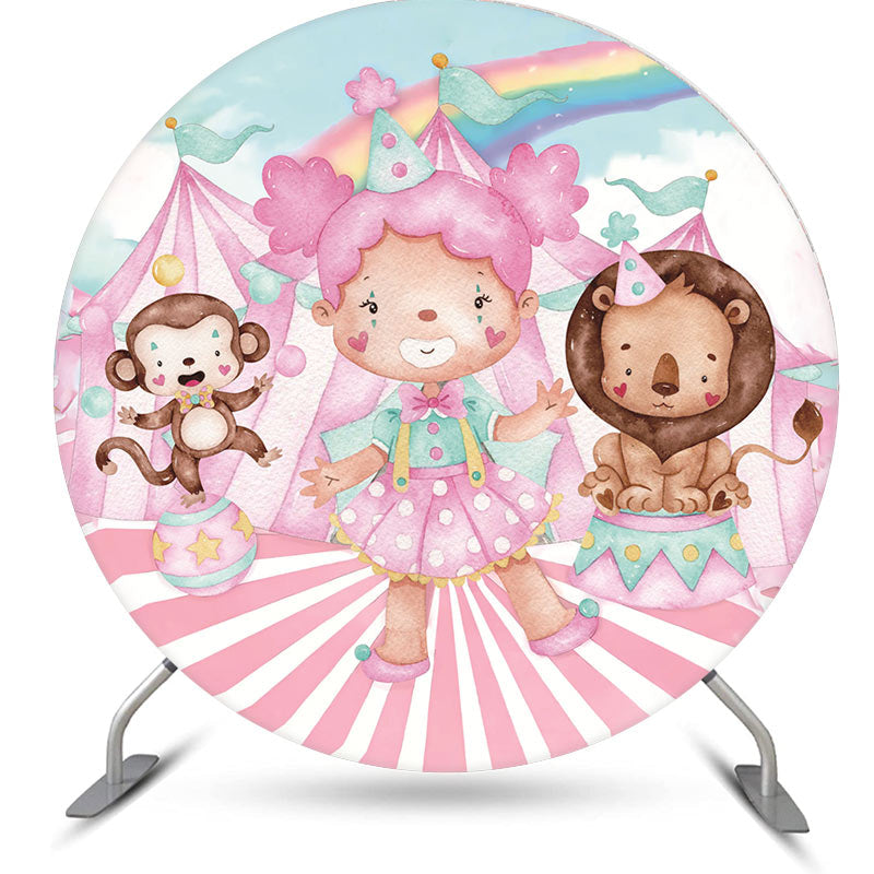 Circus Girl Animals Pink Round Birthday Backdrop Kit