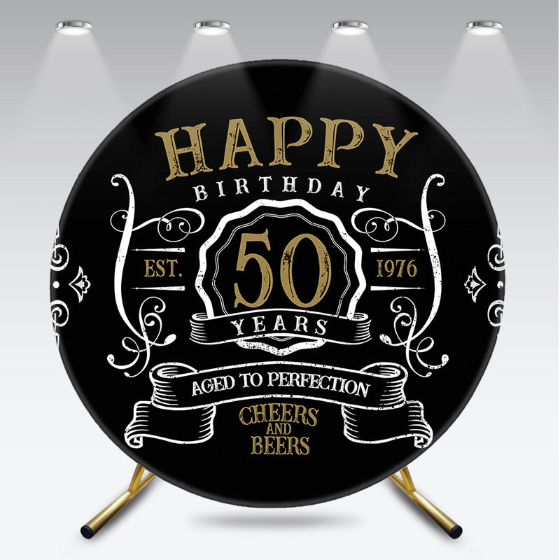 Gold And White Happy 50th Years Birthday Black Backdrop