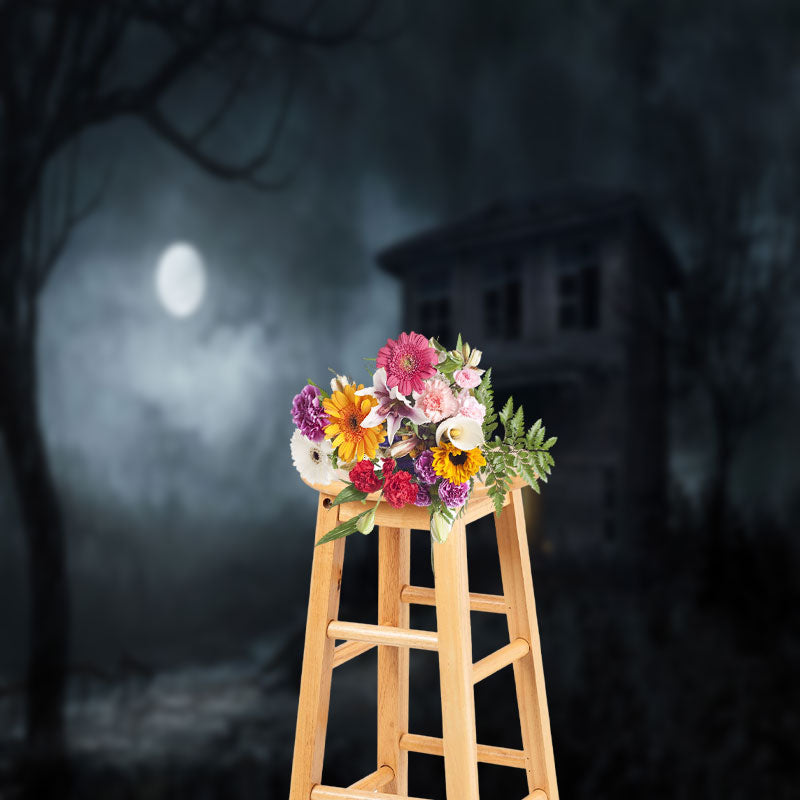 Horror Old Wooden House In Moonlight Halloween Backdrop