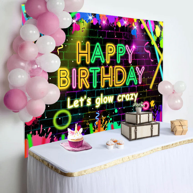 Lets Glow Crazy Brick Graffiti Birthday Backdrop