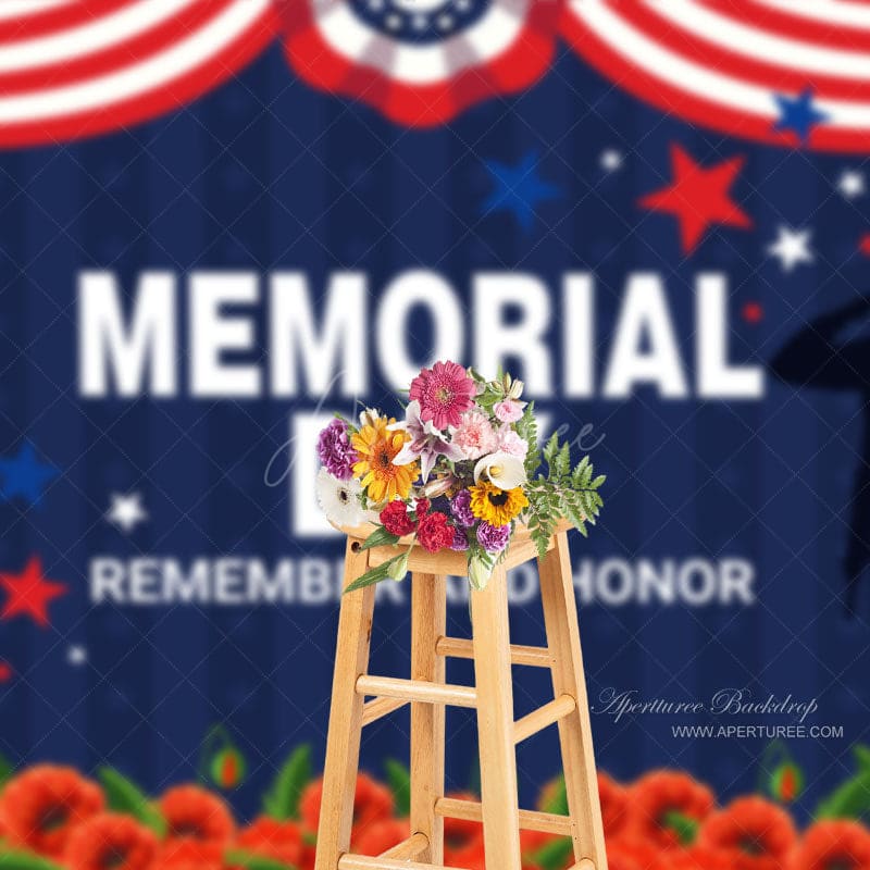 Remember And Honor Red Floral Memorial Day Backdrop