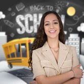 Colorful Subject Tools Bag Bus Back To School Backdrop