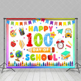 Happy 100th Day Cartoon Pen Back To School Backdrop