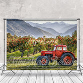 Red Car Apple Orchard Mountain Spring Photo Backdrop