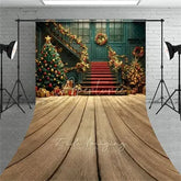 Aperturee Rustic Country Christmas Sweep Backdrop, Festive Horses in a Barn with Drums, Holiday Stable Floor Drop