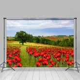 Bright Red Flowers Green Trees Field Spring Backdrop