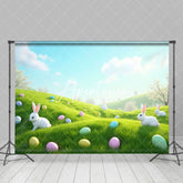 Aperturee Spring Blue Sky Hillside Eggs Rabbit Easter Backdrop