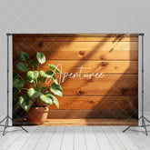 Aperturee Sunlight Greenery Potted Plant Wooden Wall Backdrop