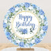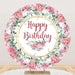 Aperturee Elegant Floral Happy Birthday Round Backdrop, Gold Frame Flower Background for Party