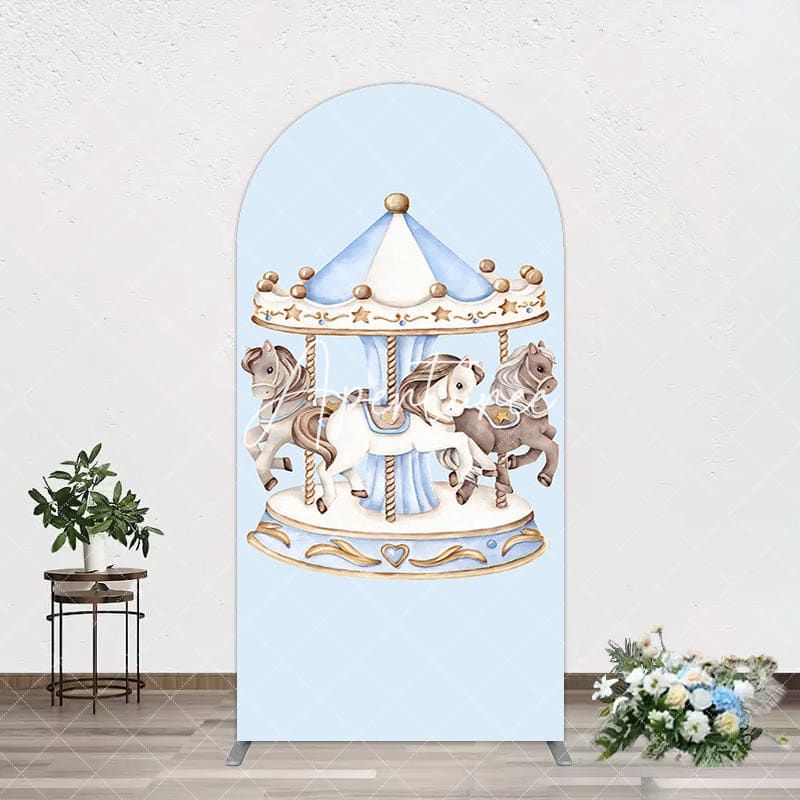 Aperturee Fairy Blue Carousel Floral Birthday Arch Backdrop